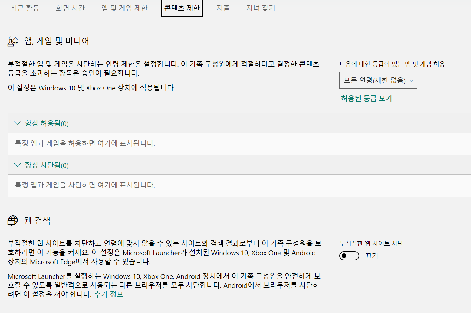 마지막으로 콘텐츠 제한을 살펴보겠습니다.