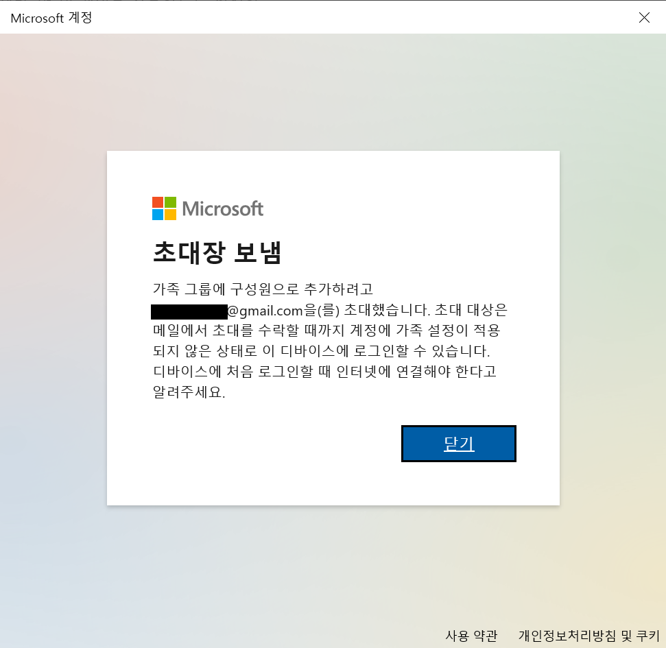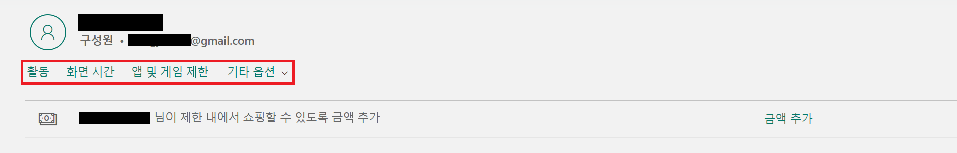 자녀의 메일 계정에서 초대장 수락이 이루어지면 아래와 같이 가족 구성원으로 추가됩니다.